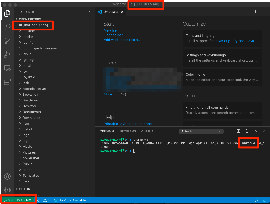 - [ev. rm /home/pi/.vscode-server -Rf]