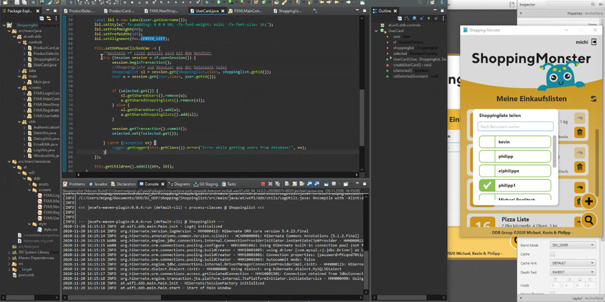 Im praktischen Teil entstanden 3 Java Projekte. Eines davon -- das Shopping-Moster (siehe Bild oben) -- wurde in JFX entwickelt, hatte eine DB Anbindung mit Hibernate und war gut zu bedienen. Wahnsinn, was so alles in wenigen Wochen möglich ist :)