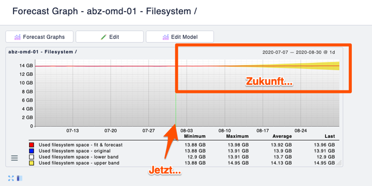 Hier wurde schön beschrieben, wie und mit welchen Alogrithmen versucht wird, in die Zukunft zu seh'n. Die Ergebnisse diverser Metriken in der Vergangenheit werden hier in die Zukunft übertragen. Dadurch bekommt man etwas bessere Planungssicherheit für die Infrastruktur und kann so einfacher Ressourcenknappheit festhalten und rechtzeitig darauf reagieren.