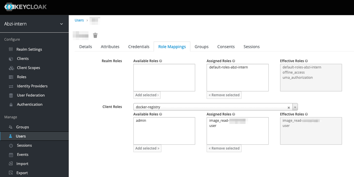 Der Zugriff ist derart, dass die Kunden auf die Images Leseberechtigungen haben und ich als Administrator (natürlich :)) auch Schreibberechtigungen. In Docker-Auth: pull und push-Berechtigungen. In Keycloak gibt es bereits Rollen-Mapper, die erweitert werden können. Auf Basis von https://github.com/ieggel/DockerRegistryKeycloakUserNamespaceMapper und https://github.com/lifs-tools/keycloak-docker-role-mapper habe ich nun einen Mappingmechanismus umgesetzt, der genau für diese Konstellation passt.